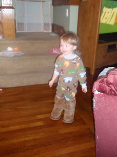 Saige is such a tom boy.. Of course. Mommie wants her girly girl and she gets the opposite. She picked out her jammies. But classied them up with mommies uggs...
